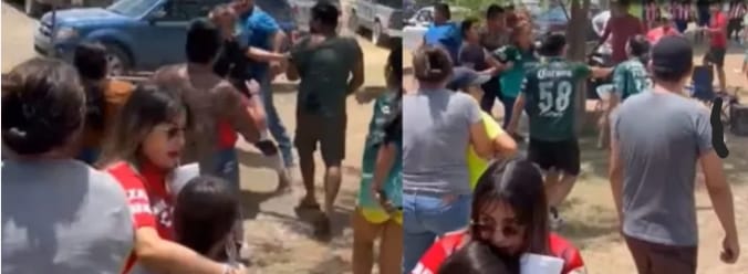En un vídeo que subió la página de Facebook “Que Bonito Llera” se puede observar a las porras de los equipos “Club León” y “Deportivo La Obrera” dándose de patadas, puñetazos y hasta jalones de pelos.