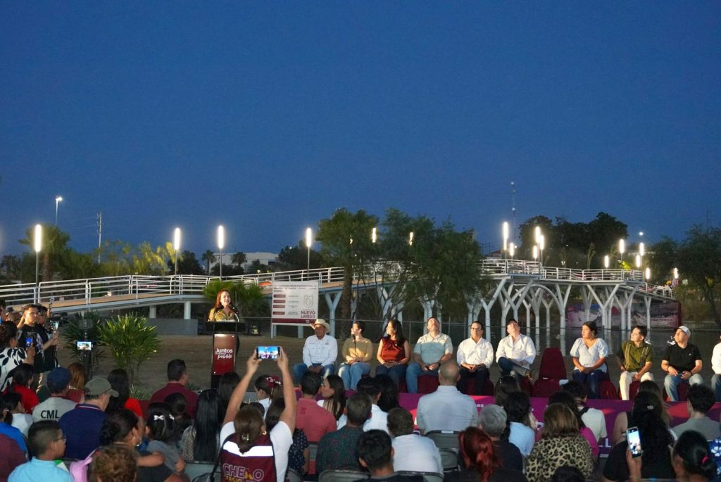 Como parte de los resultados alcanzados en el primer año de su segunda administración, la presidenta municipal Carmen Lilia Canturosas Villarreal entregó la remodelación integral de El Laguito y el Parque Península, destacando como una de las obras más emblemáticas de su gobierno y ejemplo del compromiso con la transformación urbana y ambiental de Nuevo Laredo. La inauguración del Puente Panorámico, de más de 100 metros de longitud, se convirtió en un acontecimiento ciudadano que reunió a cientos de familias. Esta estructura conecta el parque antiguo con la península rehabilitada, con una inversión de 24 millones 655 mil pesos, consolidándose como un nuevo atractivo turístico y recreativo de la ciudad. “No es solo una estructura, es un símbolo de unidad, de conexión entre nuestras familias y nuestra naturaleza. Este puente fortalece la convivencia familiar, fomenta el orgullo neolaredense y representa lo que podemos lograr cuando trabajamos juntos”, señaló la alcaldesa Canturosas Villarreal. Esta obra se enmarca en un proyecto integral de rehabilitación que transformó a El Laguito, tras décadas de abandono. Con una inversión superior a los 103 millones de pesos, el Gobierno Municipal llevó a cabo la limpieza de arroyos y canales, la eliminación de descargas sanitarias, la modernización de drenaje pluvial y sanitario, la instalación de sistemas de bombeo y aireadores, la rehabilitación del cuerpo de agua. Asimismo, se añadieron juegos infantiles, zona acuática, espacios deportivos y recreativos, generando un entorno seguro y digno para el esparcimiento familiar. Como parte de las acciones de rescate, especialistas de la Universidad Autónoma de Tamaulipas (UAT), quienes aportaron su experiencia en biología, ecología y gestión ambiental para recuperar el equilibrio natural del área. “Este lugar no es solo un espacio, es el reflejo de la esperanza de nuestra gente y de las risas que hoy resuenan aquí. Seguiremos trabajando para que Nuevo Laredo sea un hogar donde el agua fluya limpia, los árboles den sombra a sus sueños y cada rincón invite a crear recuerdos inolvidables”, puntualizó la alcaldesa.