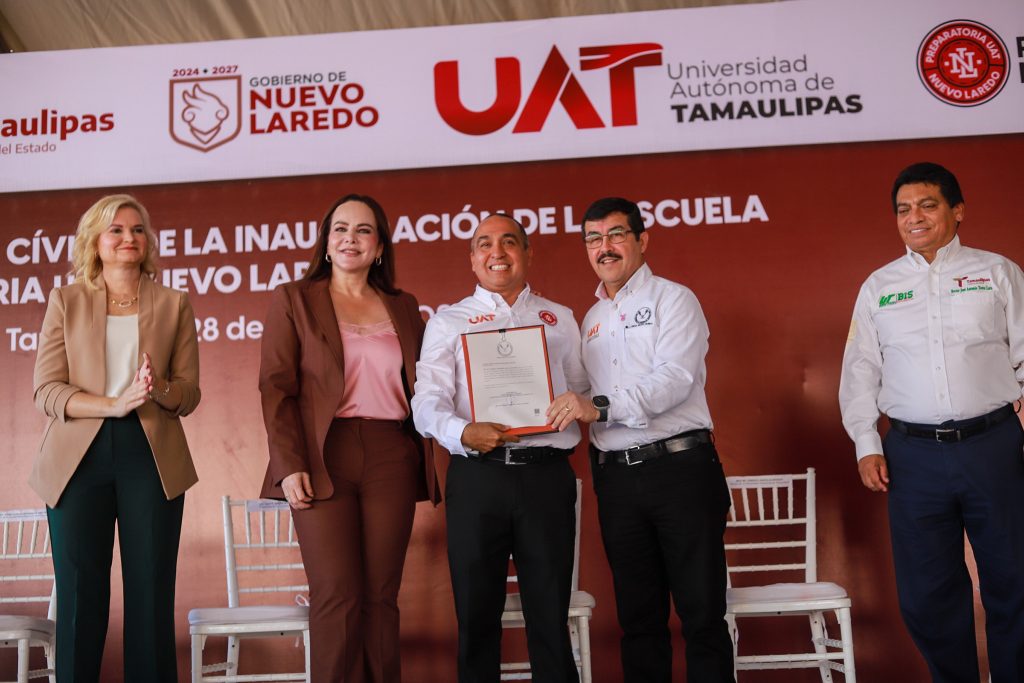 El rector Dámaso Anaya Alvarado y la alcaldesa Carmen Lilia Canturosas Villarreal inauguraron la Escuela Preparatoria de la Universidad Autónoma de Tamaulipas (UAT) en Nuevo Laredo, con lo cual se inició oficialmente la operación de este nuevo centro educativo que brindará a la juventud neolaredense