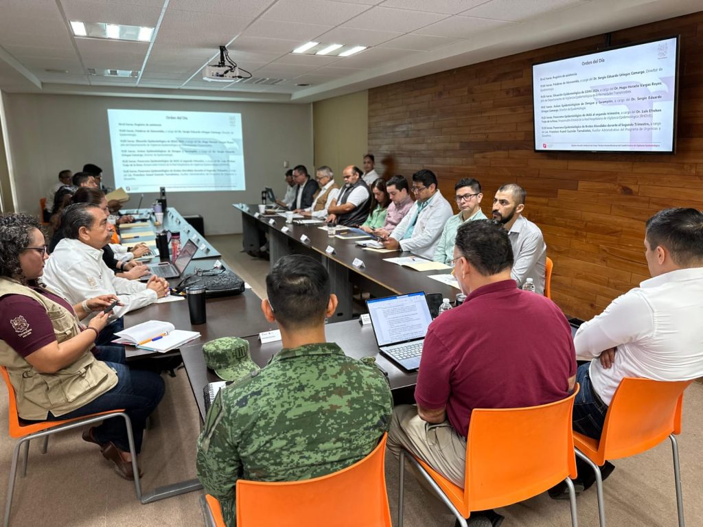 En la reunión se contó con la presencia de los representantes del IMSS, ISSSTE, DIF Estatal, Secretaría de Educación, COEPRIS, Salud Pública, Laboratorio Estatal, y de manera virtual, las jurisdicciones sanitarias y unidades hospitalarias de la entidad.