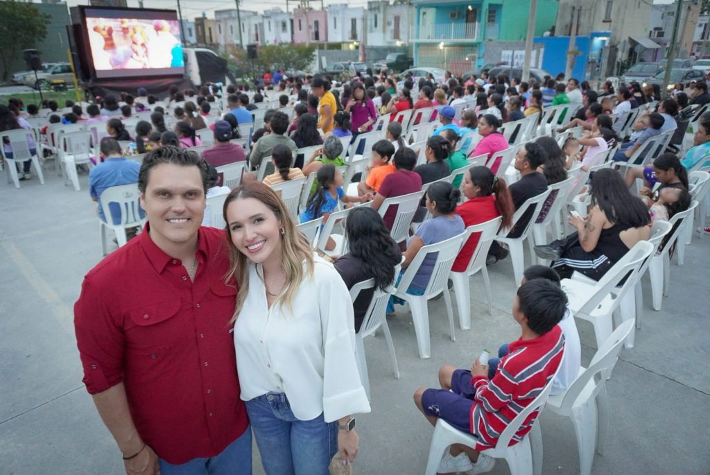 En el marco de la celebración del Día del Niño, el presidente de la Junta de Gobierno, Humberto Prieto, junto a su esposa, Verónica Garza de Prieto, llevó el cine a este sector, donde se dieron cita niñas, niños y adultos vecinos de la zona.
