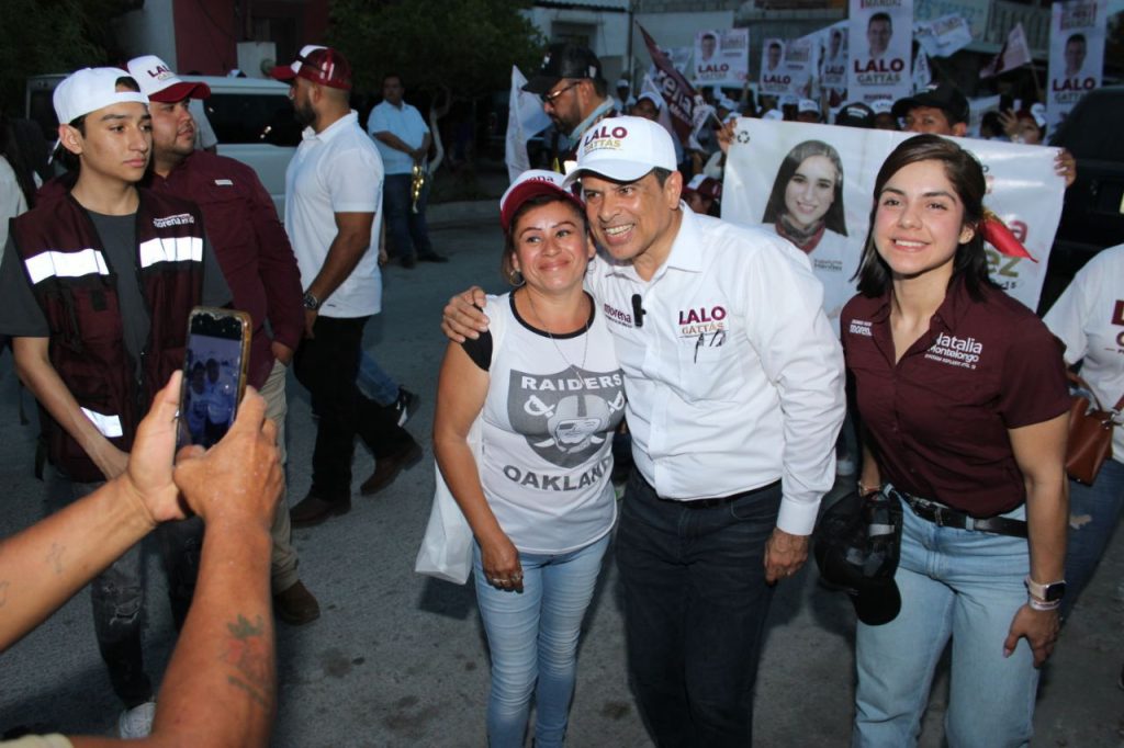 Ciudad Victoria, Tamaulipa. – Al grito de “Tres años más”, habitantes de la colonia Marte R. Gómez recibieron al candidato de Morena a la alcaldía de Victoria Lalo Gattás para refrendarle su voto de confianza al frente del proyecto de la trasformación de Victoria.