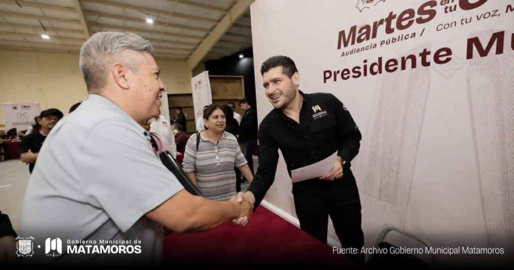 El presidente municipal de Matamoros, Beto Granados, encabezó una edición más de la audiencia pública “Martes en tu Colonia”, un ejercicio de atención directa a la ciudadanía que acerca el gobierno municipal a las familias matamorenses; este martes se atendieron más de 300 peticiones por parte de la ciudadanía.