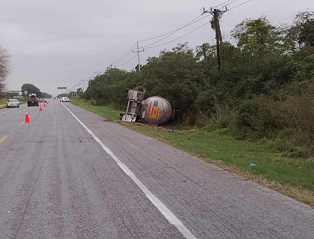 La volcadura se suscitó fuera de la cinta asfáltica y no se registraron personas lesionadas.