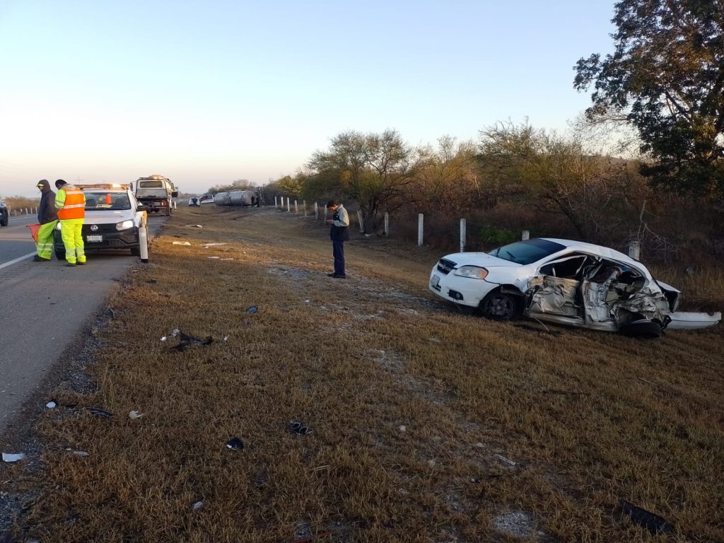 González, Tamaulipas.- En atención a un reporte del C4 personal de la Guardia Estatal de Apoyo Carretero comisionado a la Estación Segura Escandón acudió al kilómetro 42 de la Carretera Federal 81 para auxiliar a dos mujeres y un menor que resultaron lesionados tras un choque contra una pipa.