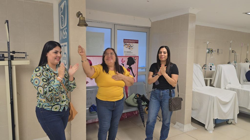 La médica oncóloga del hospital, doctora María Del Rosario Estrada Falcón, informó que el tratamiento incluyó sesiones de quimioterapia y bloqueo endócrino, a los cuales la paciente respondió de manera satisfactoria, superando el cáncer de mama y logrando alzar la “campana de la victoria” en el HGR No. 6 de Ciudad Madero.