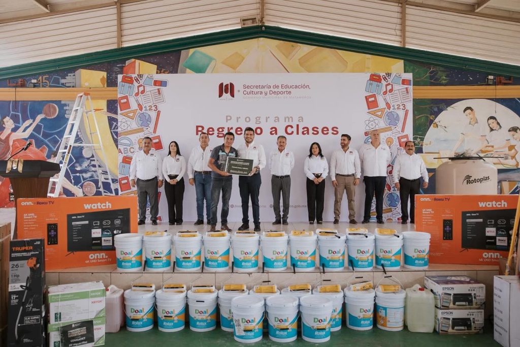 El Presidente Municipal, Beto Granados, visitó el CBTis 135 para dar inicio al programa Regreso a Clases 2025, una estrategia orientada a fortalecer la infraestructura educativa y garantizar mejores condiciones para el desarrollo académico de los estudiantes. Con una inversión de 7 millones de pesos, el Gobierno de Matamoros beneficiará a un total de 68 instituciones educativas mediante apoyos en especie: 60 planteles de preescolar, primaria y secundaria recibirán cien mil pesos cada uno y ocho preparatorias urbanas y rurales contarán con 125 mil pesos en insumos y equipamiento. Durante la jornada en el CBTis 135, se entregaron más de 20 cubetas de pintura y herramientas para la renovación de sus instalaciones, refrendando el compromiso de esta administración con el fortalecimiento de la educación en todos los niveles. El Gobierno de Beto Granados reiteró que invertir en las escuelas es invertir en el futuro de Matamoros, impulsando el desarrollo de nuevas generaciones con espacios más dignos y adecuados para el aprendizaje.