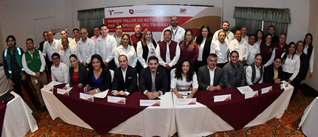 Ciudad Victoria, Tamaulipas.- Como parte del plan de trabajo 2024, inspectores pertenecientes a la Secretaría del Trabajo y Previsión Social del Gobierno de Américo Villarreal Anaya, participaron en el Primer Taller de Actualización, respecto de las normas oficiales mexicanas, el programa de entornos laborales seguros y saludables del IMSS, las funciones del Centro de Conciliación y acciones para la erradicación del trabajo infantil, que forman parte de la agenda con que se conducen en Tamaulipas.