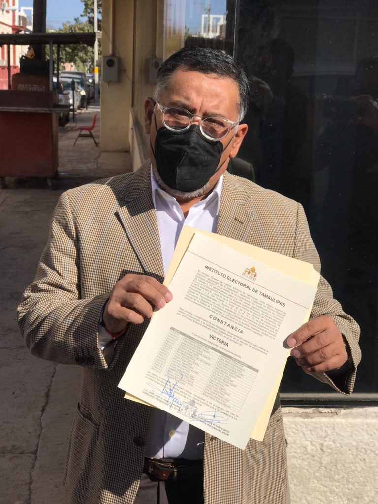 Cd Victoria, Tamaulipas.- Con más de 40 años viviendo en esta capital, el Dr. Alejandro Karaveo recibió su constancia para buscar más de 7 mil firmas que le acrediten participar como candidato independiente