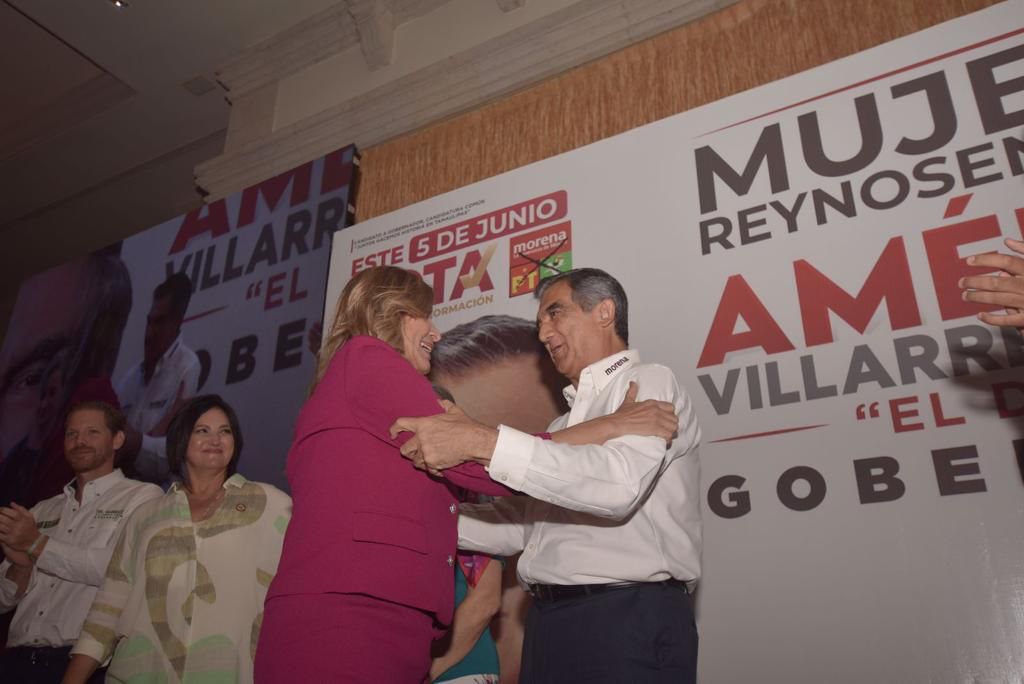La exaspirante a la candidatura de Morena para contender por la gubernatura de Tamaulipas, Maki Ortiz Dominguez, no le quedó de otra más que levantarle la mano a Américo Villarreal.