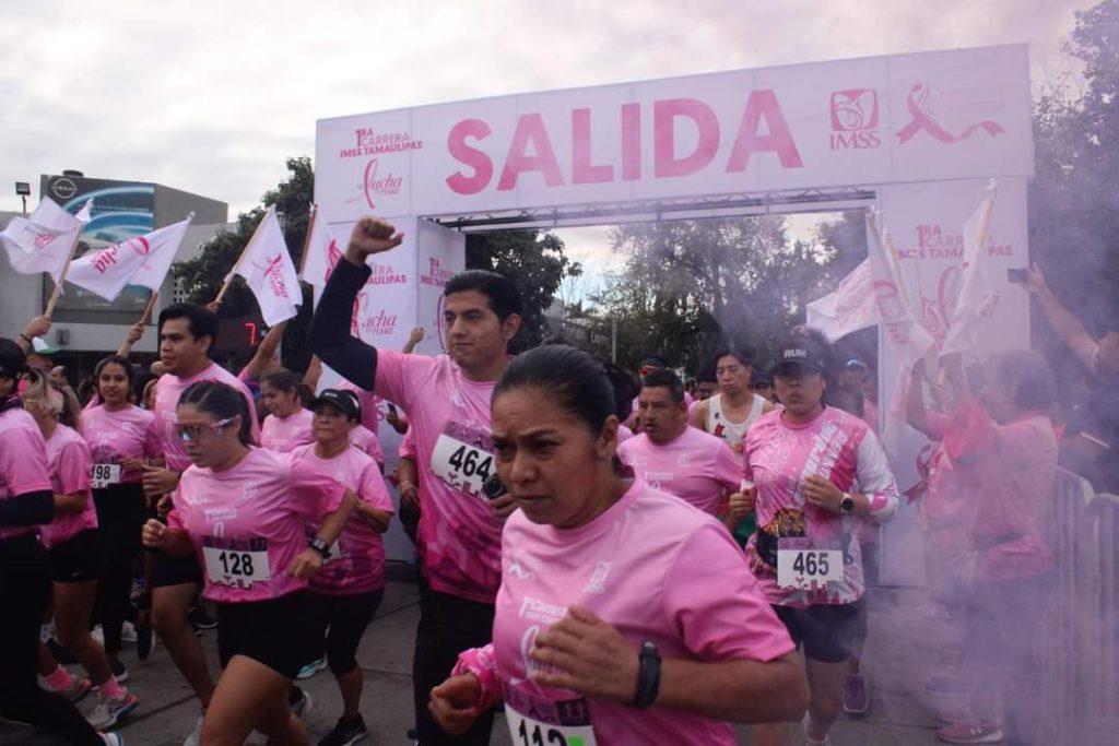 A fin de concientizar sobre la lucha contra el cáncer de mama, a través de acciones de prevención y detección temprana, el IMSS en Tamaulipas realizó una carrera caminata 3, 5 y 10 K en conmemoración del mes de la lucha contra este padecimiento.