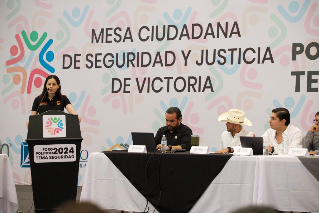 Ciudad Victoria, Tamaulipas.- La candidata a Diputada local de Movimiento Ciudadano por el XV Distrito electoral, Mayra Benavides Villafranca tuvo participación en la mesa ciudadana de seguridad y justicia de Victoria, el cual se realizó en el Gimnasio de la ULSA campus Norte.