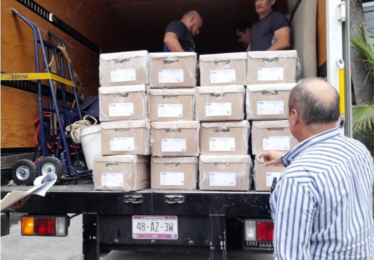 Se recibieron 136 cajas con 39 mil 464 tantos correspondientes a los ocho Distritos Electorales Federales, con un total de 473 mil 512 hojas.
