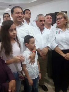 Julio acudió compañado por su familia , su señor Padre Indalecio Portales , Guadalupe Acevedo presidenta del PRI en el Mante , Tino Saenz candidato a la diputación federal por el VI distrito , lideres de sectores y organizaciones y militancia .