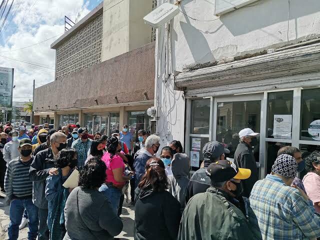 Matamoros, Tamaulipas. – Cientos de personas de la tercera edad hacen largas filas bajo los rayos del sol en el Centro de Convenciones “Mundo Nuevo”, para recibir el pago de la Pensión Universal para Personas Adultas Mayores.