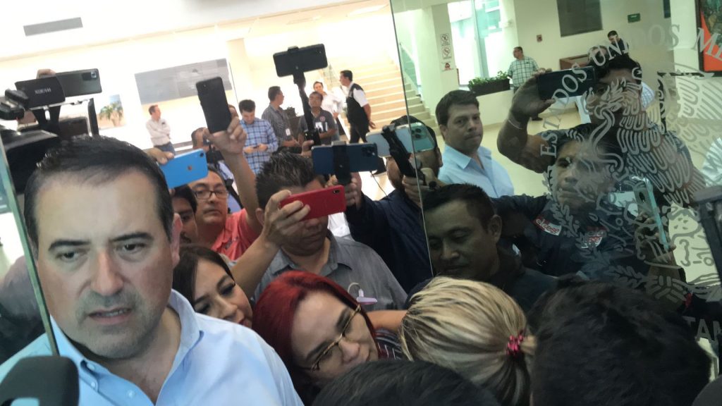 Con presencia policiaca en el interior del congreso del Estado el diputado García Aguiar y el legislador y Presidente del Comité Directivo Estatal del PAN Luis René Cantú Galván se dirigieron a Palacio de Gobierno para entregar un escrito al gobernador del estado Américo Villarreal Anaya.