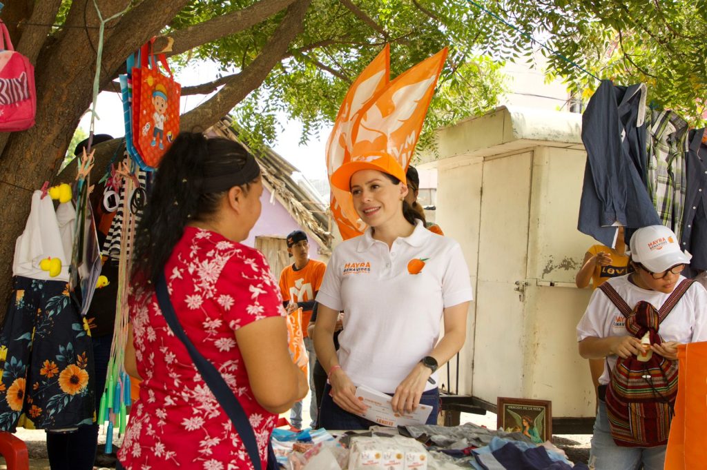 Ciudad Victoria, Tamaulipas.- A veinte días de haber iniciado el periodo de campaña, la candidata a Diputada local de Movimiento Ciudadano por el XV Distrito electoral, Mayra Benavides Villafranca platicó con comerciantes ambulantes del tianguis que se encuentra en la colonia Horacio Terán.