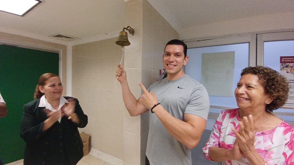 Luego de un tratamiento que incluyó una cirugía y de quimioterapias en el Hospital General Regional (HGR) No. 6 del Instituto Mexicano del Seguro Social (IMSS) en Ciudad Madero, Tamaulipas, Israel ”N”, de 38 años, superó el cáncer testicular y tocó la “campana de la victoria”.