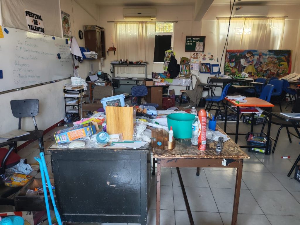 De acuerdo con reportes, personas desconocidas sustrajeron el cableado eléctrico, lo que dejó sin energía a toda la institución. Además, fueron robadas las llaves de los bebederos, las de los baños, así como mobiliario escolar, entre ellos mesas y equipo de cómputo.