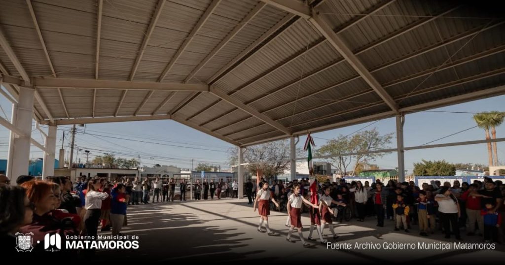 Hoy lunes, inicio de semana, el Presidente Municipal de Matamoros, Beto Granados, encabezó la Ceremonia de Honores a la Bandera en el Centro de Atención Múltiple (CAM) Laboral “Alfonso Sánchez Sánchez”, ubicado en la colonia Los Encinos, donde además se llevó a cabo la inauguración oficial de una nueva techumbre y explanada que fortalecerán las actividades educativas, cívicas y recreativas del plantel.